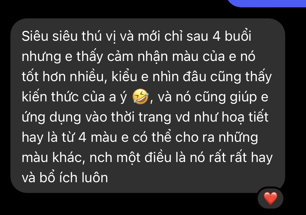 Nhận thấy có rất nhiều bạn gặp vấn đề tương tự, mình quyết định tạo ra 1 khoá học màu chưa có tiền lệ: Ngôn ngữ màu.